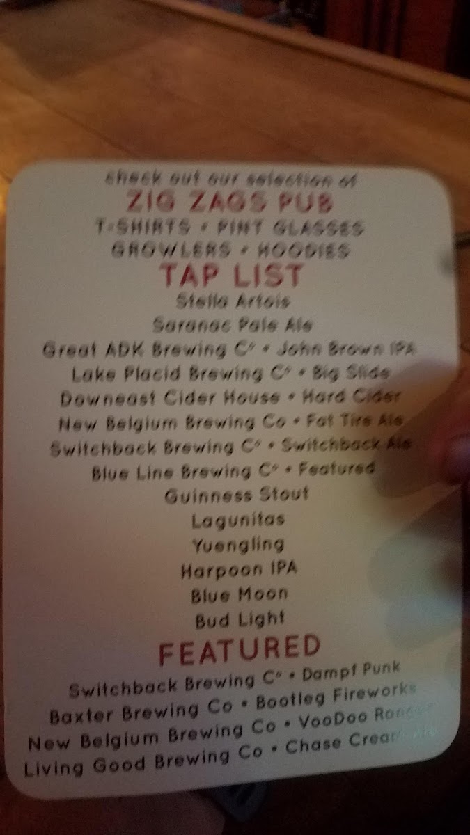 Nestled in the heart of Lake Placid, Zig Zags Pub is an inviting dive bar that exudes a vibrant local atmosphere. With a robust tap list featuring favorites like Stella Artois, Guinness Stout, and Switchback Ale, beer enthusiasts will find plenty to enjoy. The menu embraces classic pub fare, perfect for noshing while playing darts or pool.